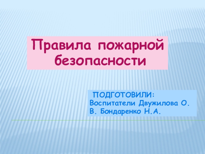 Правила пожарной безопасности ПОДГОТОВИЛИ:Воспитатели Двужилова О.В. Бондаренко Н.А.