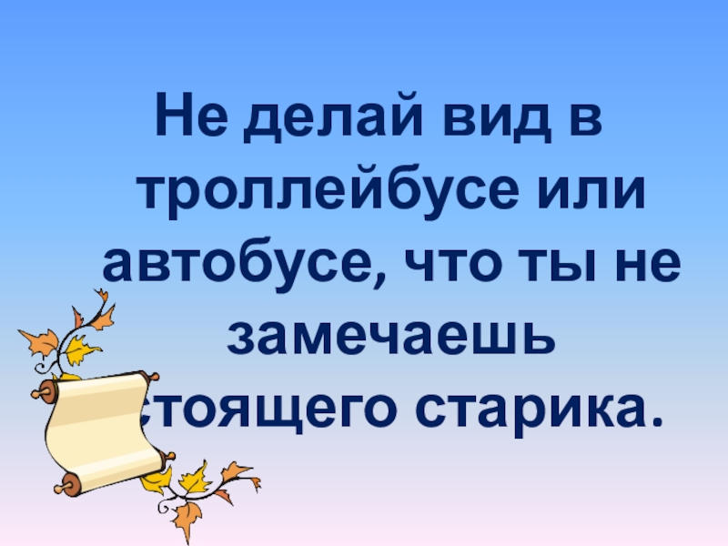 Слайд 22Не делай вид в троллейбусе или автобусе, что ты не замечаешь