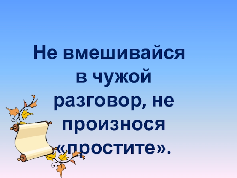 Слайд 20Не вмешивайся в чужой разговор, не произнося «простите».