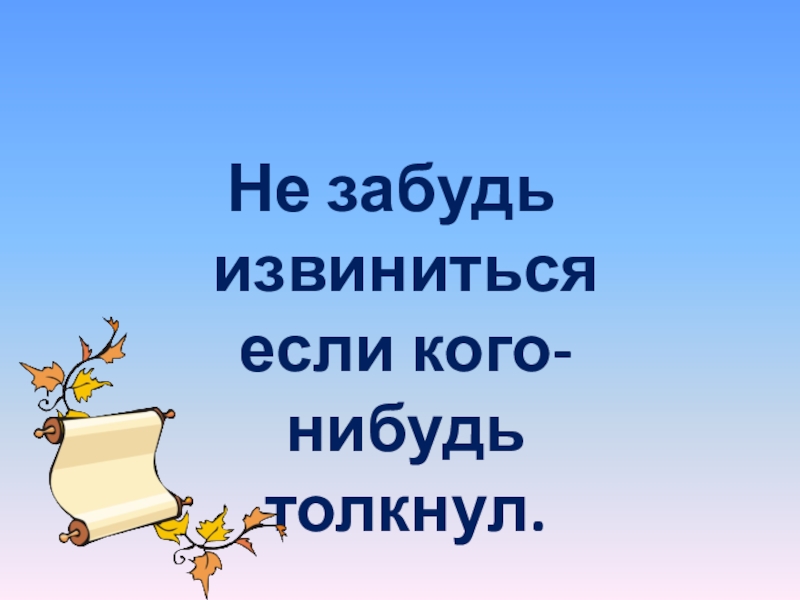 Слайд 21Не забудь извиниться если кого-нибудь толкнул.