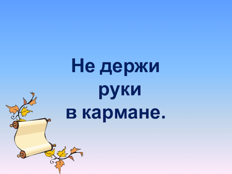 Не держи руки в кармане.