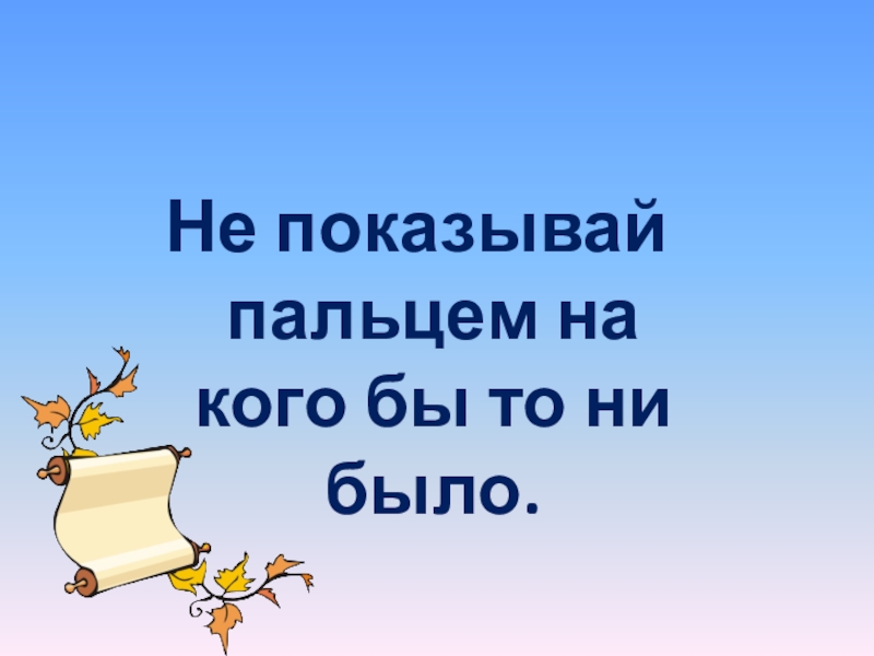 Слайд 19Не показывай пальцем на кого бы то ни было.