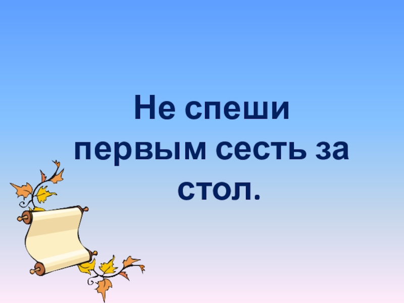 Не спеши первым сесть за стол.