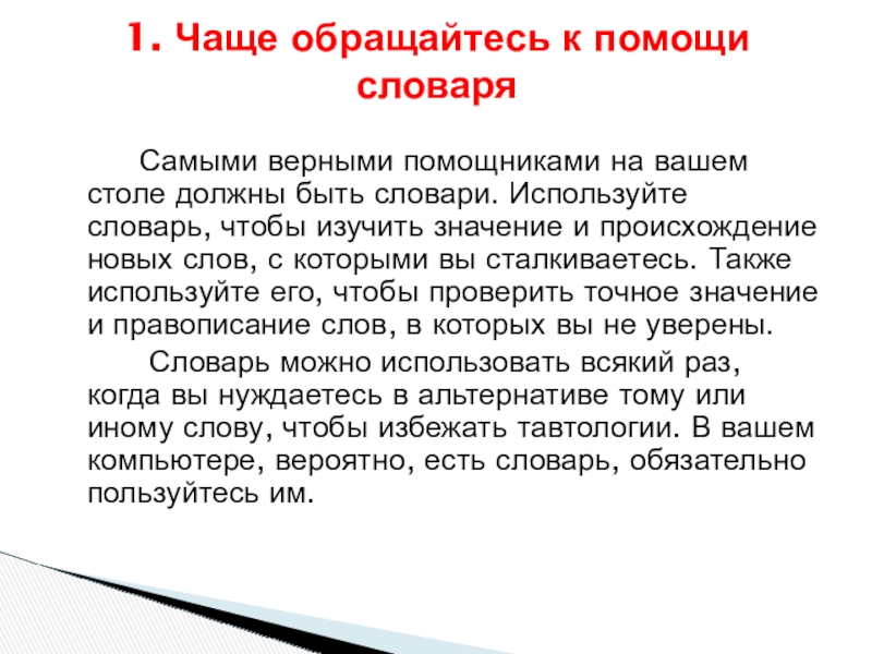 1. Чаще обращайтесь к помощи словаря