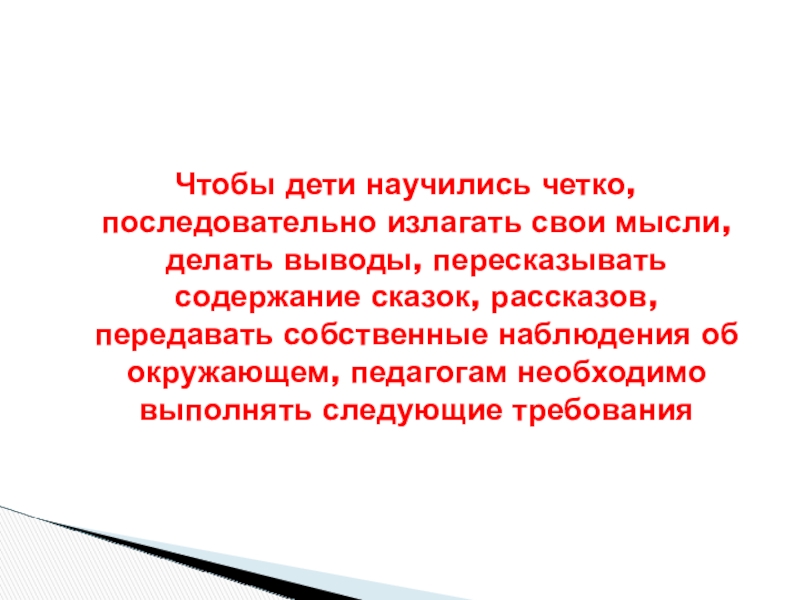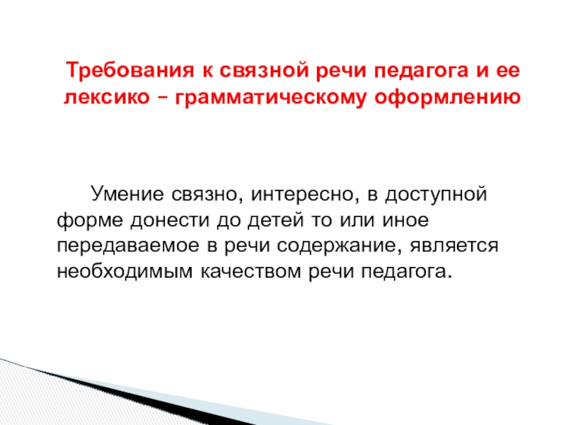 Требования к связной речи педагога и ее лексико – грамматическому оформлению