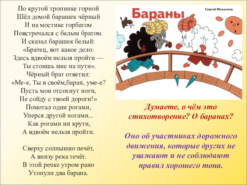 Оно об участниках дорожного движения, которые других не уважают и не соблюдают правил хорошего тона.