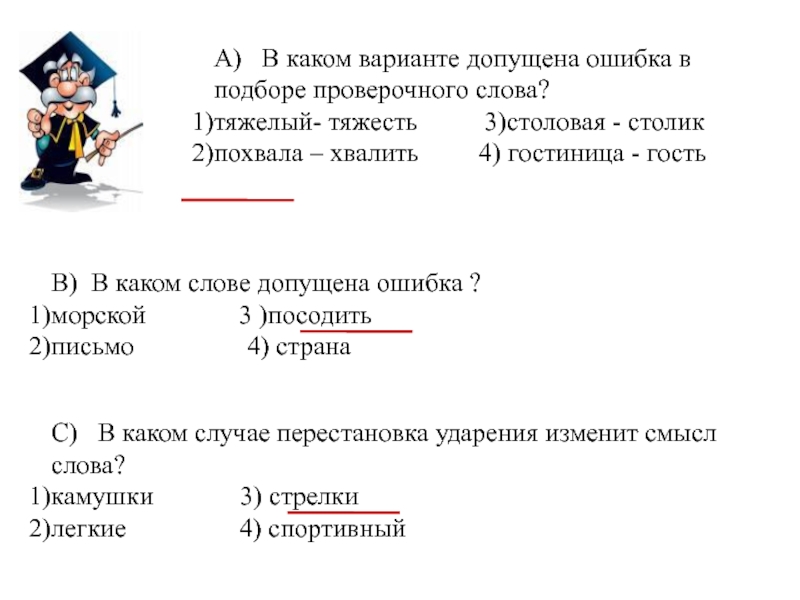 В) В каком слове допущена ошибка ?