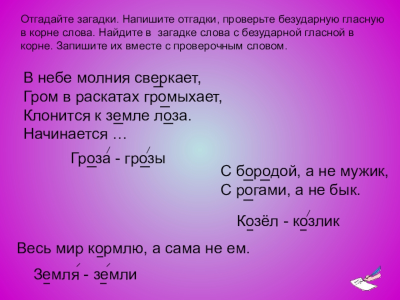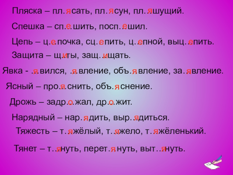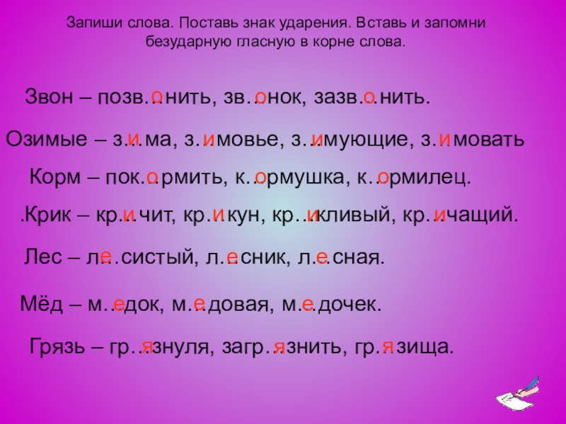 Грязь – гр…знуля, загр…знить, гр…зища.