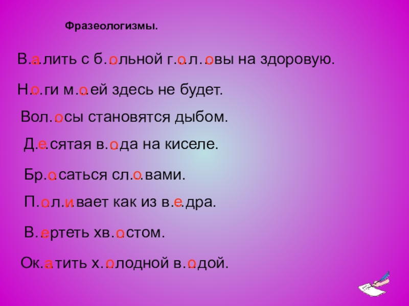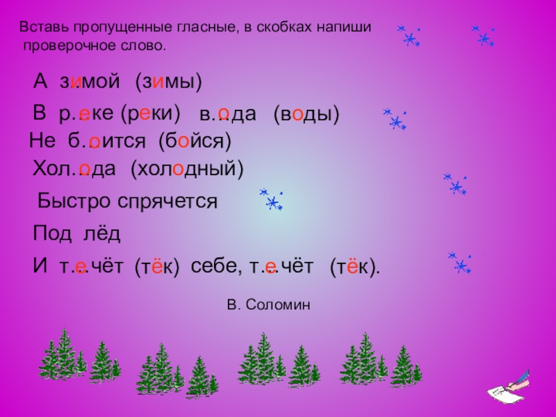 д…ревьях, м…няют шубку, к…ра б…рёзки, з…п…х