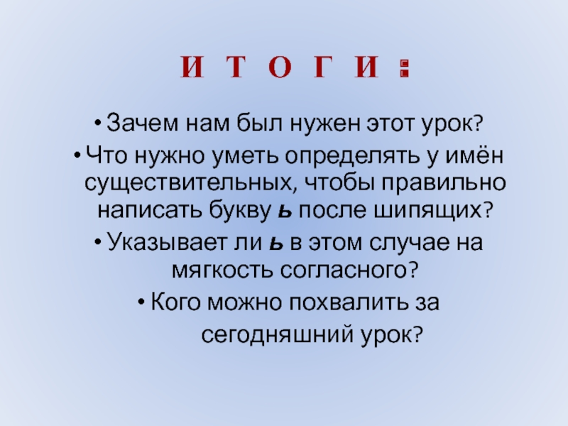 4. В ж. р. – пишем Ь, в м. р. – нет.