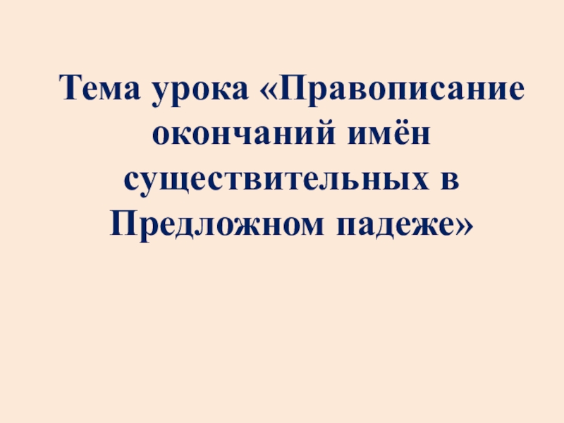 Тема урока «Правописание окончаний имён существительных в Предложном падеже»