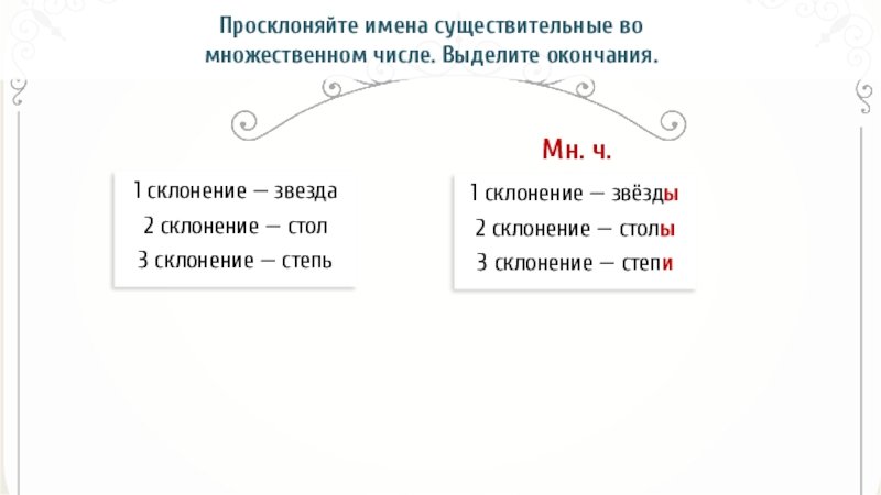Просклоняйте имена существительные во множественном числе. Выделите окончания.