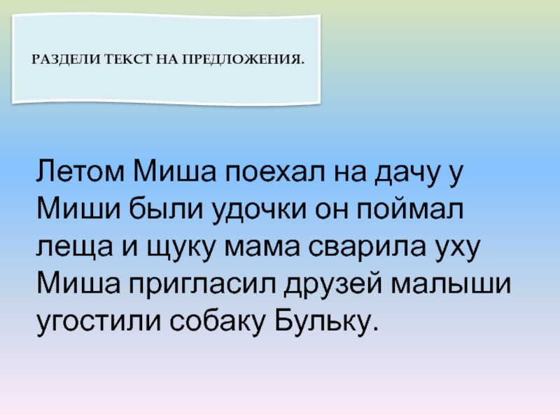 РАЗДЕЛИ ТЕКСТ НА ПРЕДЛОЖЕНИЯ.