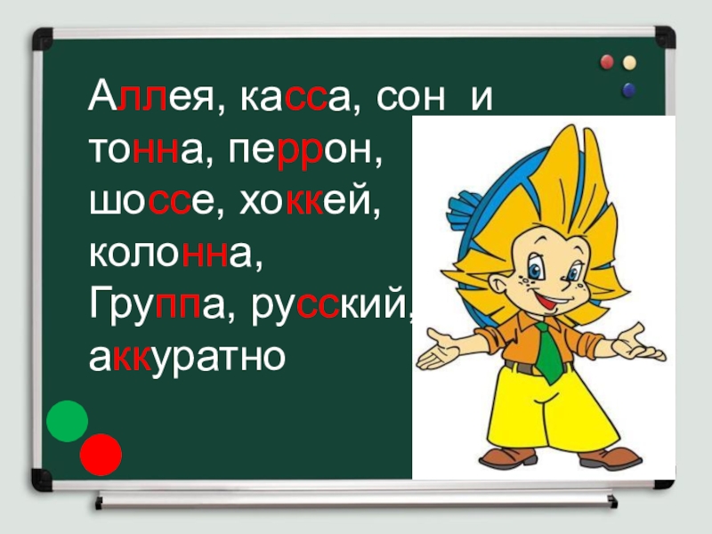 помог уже вчера. И я теперь смогу на «пять» Их, без сомненья, написать: Аллея, каса, сонн и тона, Перонн, шосе, хокей, коллонна, Гррупа, русккий, акурратно, Ну что, друзья, тут непонятно?