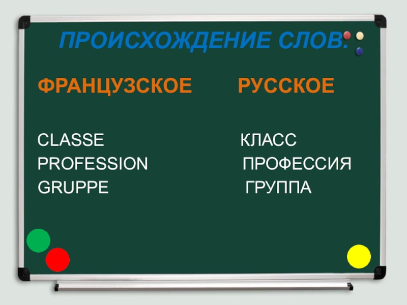 ПРОИСХОЖДЕНИЕ СЛОВ. ФРАНЦУЗСКОЕ    РУССКОЕCLASSE