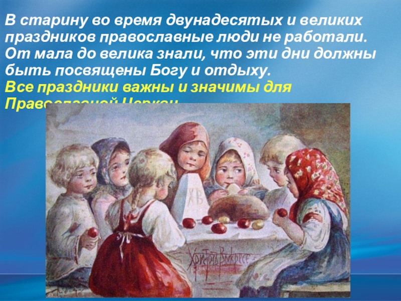 Слайд 17В старину во время двунадесятых и великих праздников православные люди не