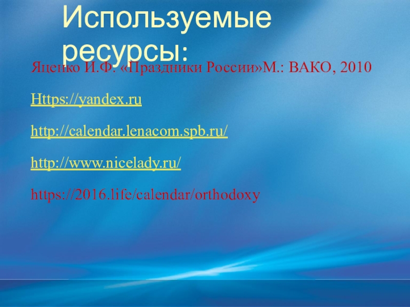 Слайд 18Используемые ресурсы: