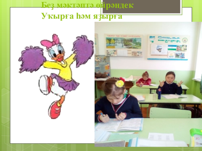 Слайд 4Беҙ мәктәптә өйрәндек Уҡырға һәм яҙырға
