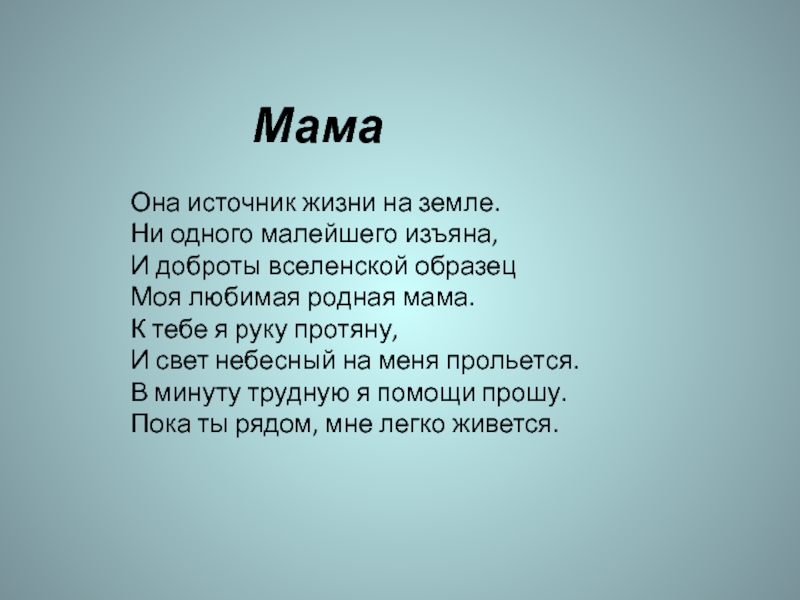 Слайд 30Самый дорогой для меня человек — это моя мама. Моя мама