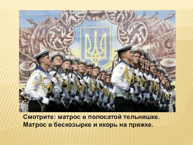 Слайд 10Смотрите: матрос в полосатой тельняшке.
