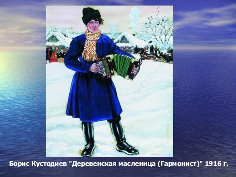 Борис Кустодиев "Деревенская масленица (Гармонист)" 1916 г.