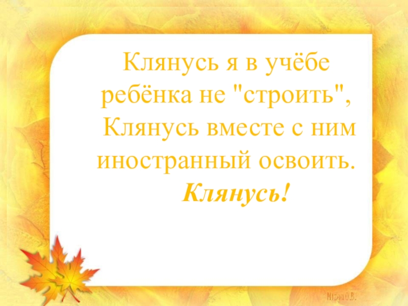 Клянусь я в учёбе ребёнка не "строить",
