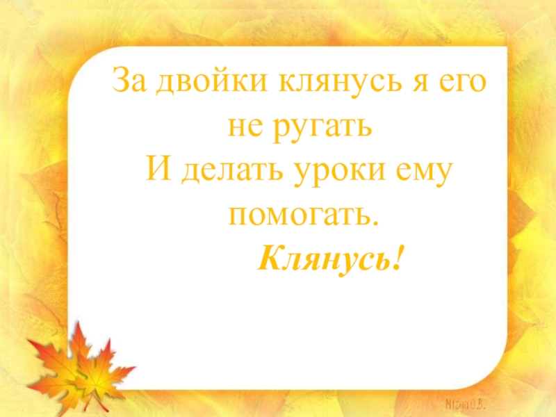 Клянусь выходить в надлежащие сроки, Клянусь не опаздывать я на уроки. Клянусь!
