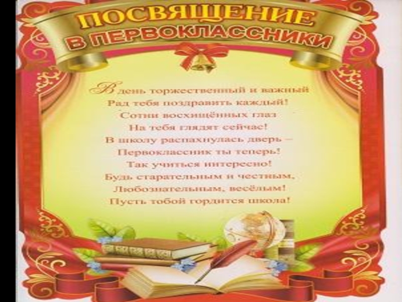 Презентация, доклад на тему Праздник Посвящение в первоклассники (сценарий и сопровождение - презентация)