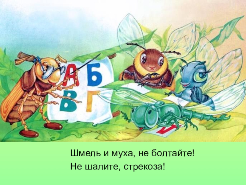 Шмель и муха, не болтайте! Не шалите, стрекоза!