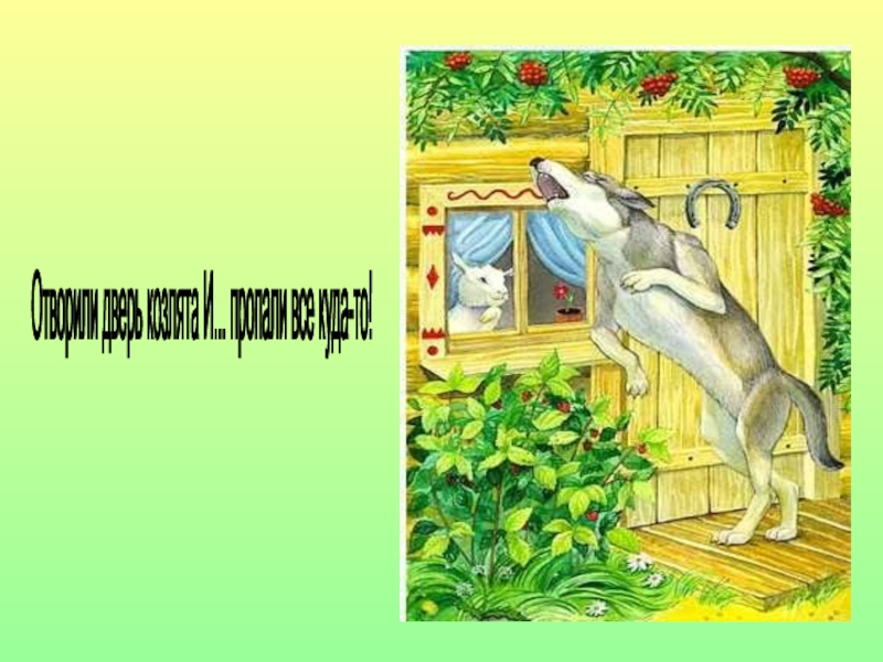 Слайд 68Отворили дверь козлята И... пропали все куда-то!