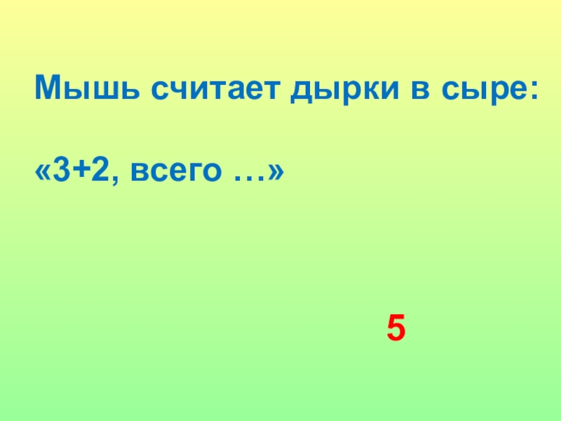 Мышь считает дырки в сыре:  	«3+2, всего …»5