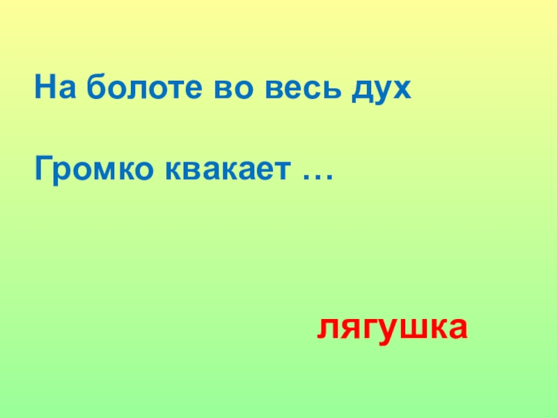 На болоте во весь дух  	Громко квакает …лягушка