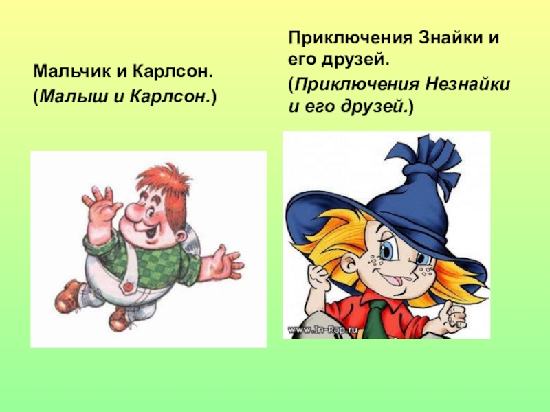 Мальчик и Карлсон. (Малыш и Карлсон.) Приключения Знайки и его друзей. (Приключения Незнайки и его друзей.)