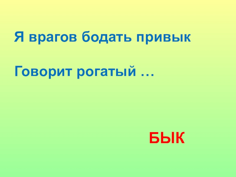 Я врагов бодать привык  	Говорит рогатый …БЫК