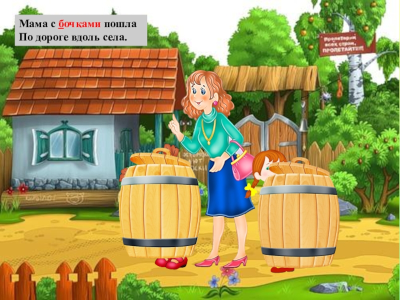 Слайд 63Мама с бочками пошла