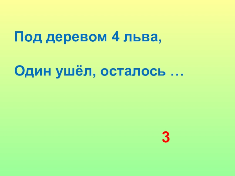 Под деревом 4 льва,  	Один ушёл, осталось …3