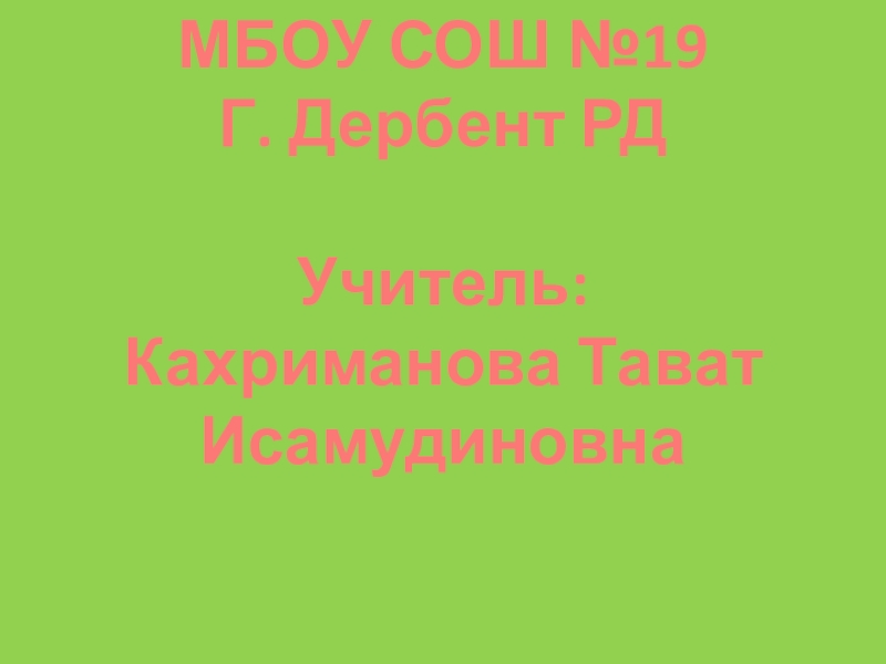 МБОУ СОШ №19 Г. Дербент РДУчитель: Кахриманова Тават Исамудиновна