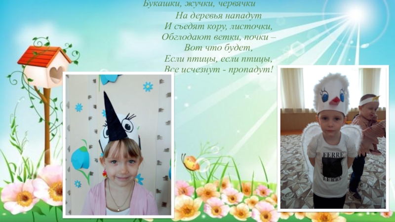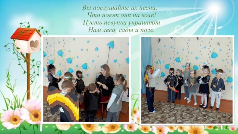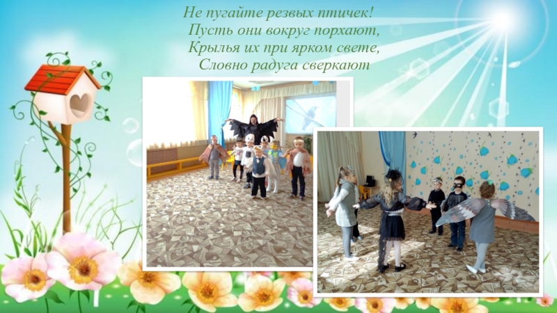 Слайд 8Не пугайте резвых птичек! Пусть они вокруг порхают, Крылья