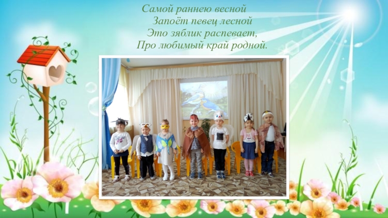 «Птичий день, птичий день, На планете птичий день! Это главный птичий праздник. Сообщаем это всем!» - Ребята младшего возраста к этому дню разучили стихи, песни, приготовили костюмы, и с