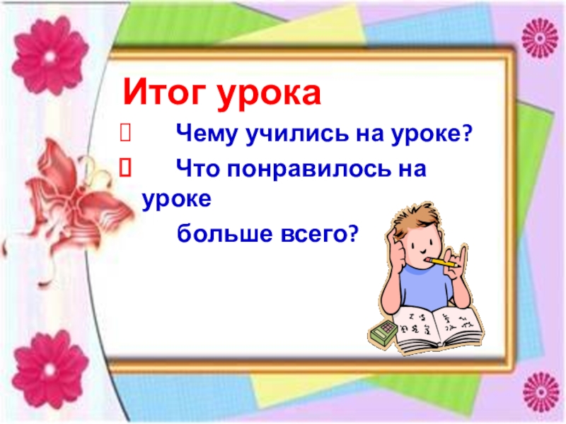Итог урока   Чему учились на уроке?   Что понравилось на уроке