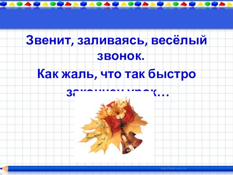 Звенит, заливаясь, весёлый звонок.Как жаль, что так быстро закончен урок…