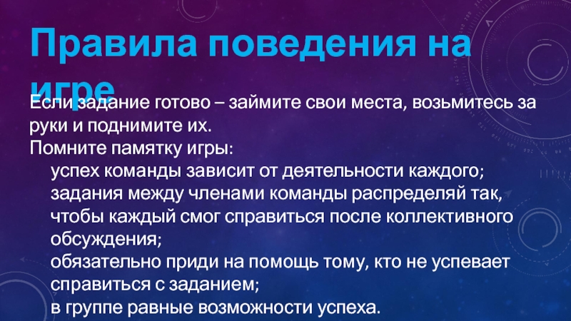 обязательно приди на помощь тому, кто не успевает справиться с заданием;