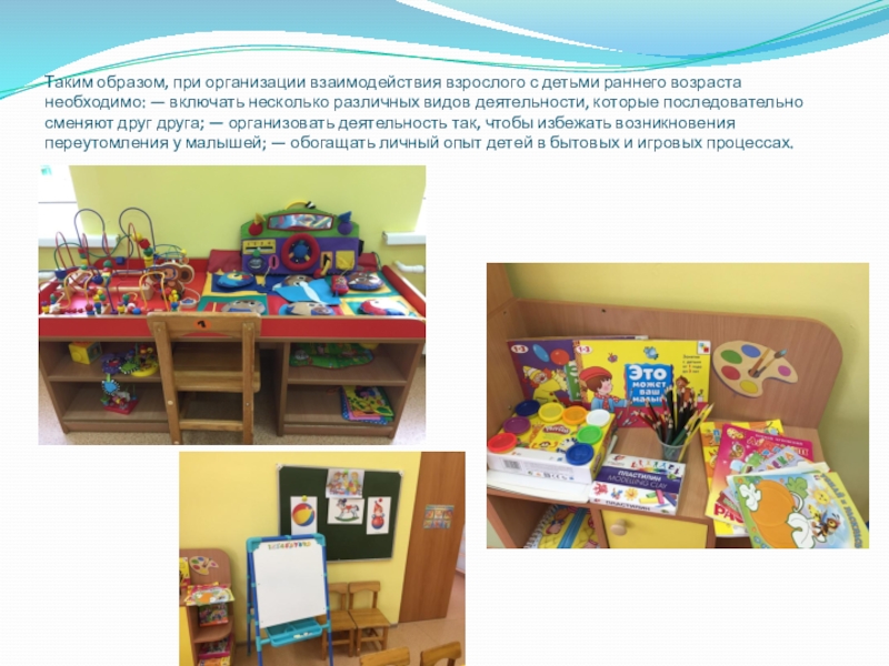 Слайд 8Таким образом, при организации взаимодействия взрослого с детьми раннего возраста необходимо: