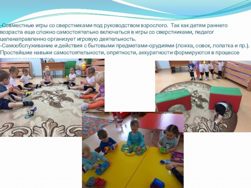 Слайд 6-Совместные игры со сверстниками под руководством взрослого. Так как детям раннего