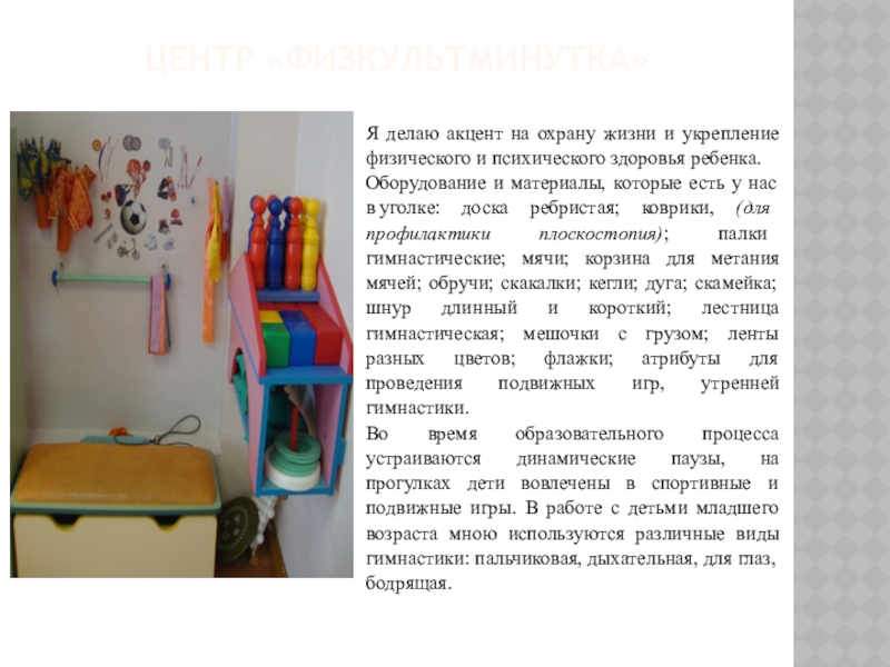 Слайд 3Центр «физкультминутка»