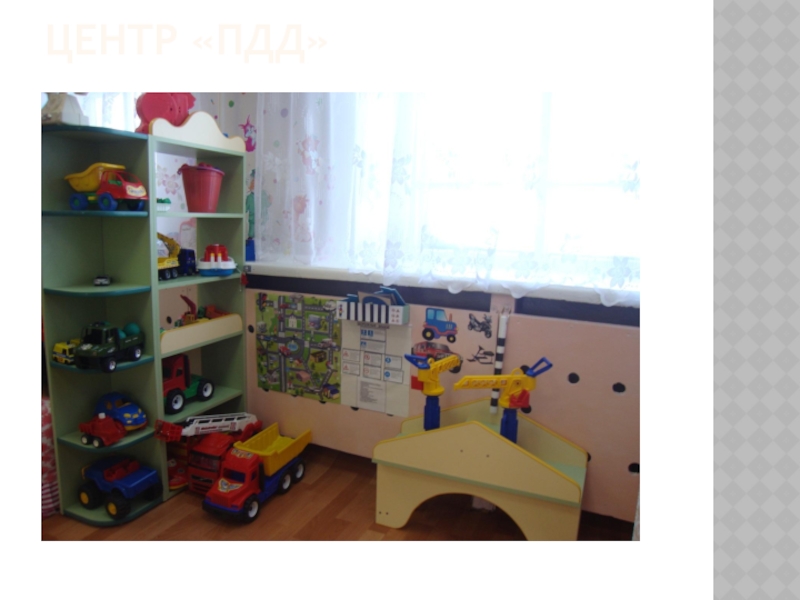 Поэтому все центры в развивающей среде созданы в соответствии с этой программой, с рекомендациями по развивающей среде: учтены основные требования и основные принципы организации среды.