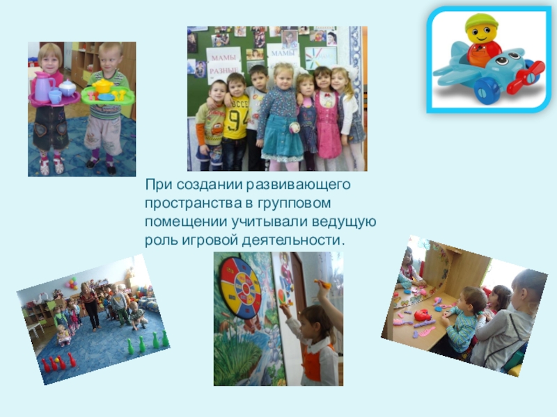 Слайд 10При создании развивающего пространства в групповом помещении учитывали ведущую роль игровой