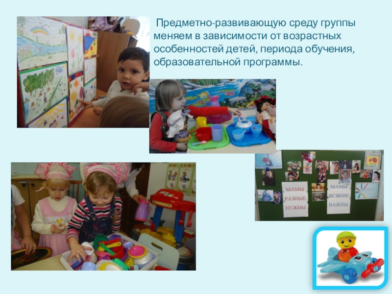 Слайд 11 Предметно-развивающую среду группы меняем в зависимости от возрастных особенностей детей,