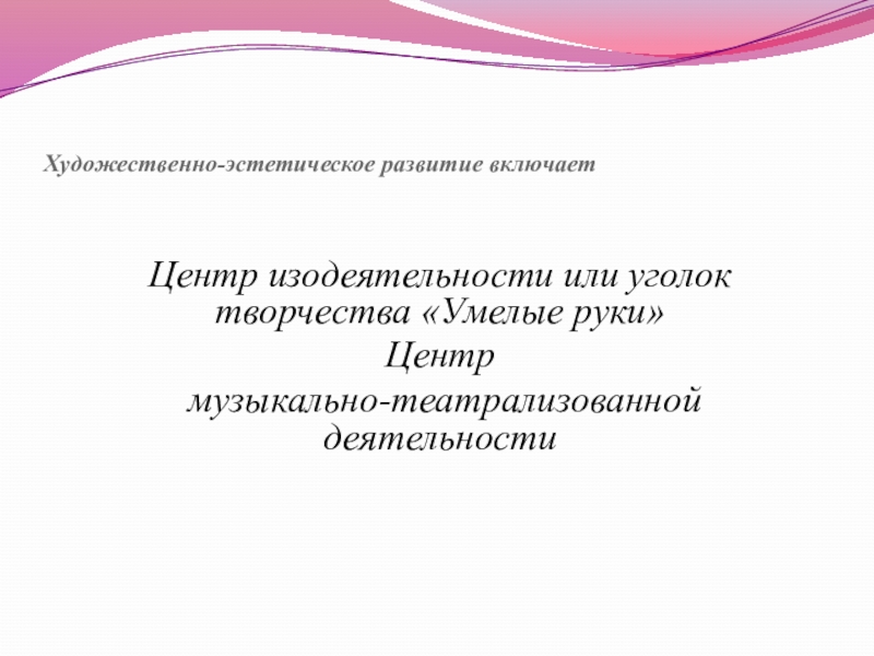 Развивающая предметно-пространственная среда – часть образовательной среды, представленная специально организованным пространством (помещениями, участком и т. п., материалами, оборудованием и инвентарем для развития детей дошкольного возраста в соответствии с особенностями каждого возрастного этапа, охраны и укрепления их здоровья, учёта особенностей и коррекции недостатков их развития.