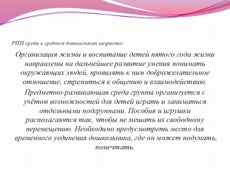 Слайд 4РПП среда в среднем дошкольном возрасте: